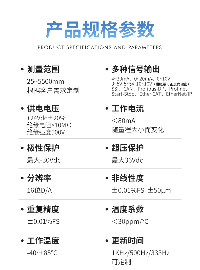 對熱軋板而言,其質量要求主要包括厚度、板形精度、成形性能及表面質量等。為了提高產品板形質量,多數熱軋廠在精軋機上裝備了工作輥、彎輥和竄輥裝置,竄輥裝置可以通過擴大帶鋼凸度的控制范圍、減小帶鋼橫斷面上的邊部減薄和重新分布帶鋼邊緣附近的軋輥磨損來實現對帶鋼的板形控制,在保持良好平直度的同時得到了滿足要求的板形。直線位移傳感器常用于精軋機組位移控制系統,實現精密測控的需要。